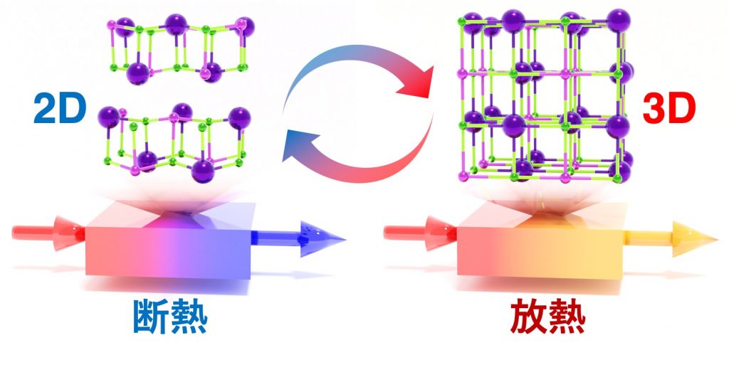 電子機器や自動車、エネルギー変換デバイスなどの高性能化に伴い、効率的な熱マネジメント技術の重要性がますます高まっています。当研究室では、結晶構造の次元性を変化させる新物質を開発し、温度によって断熱と放熱を切り替える熱制御材料を実証してきました。最近では、効率よく熱を放出できる超高熱伝導材料の開発も推進し、断熱から放熱まで熱の流れを自在に操る革新的な熱制御材料の開発を目指しています。