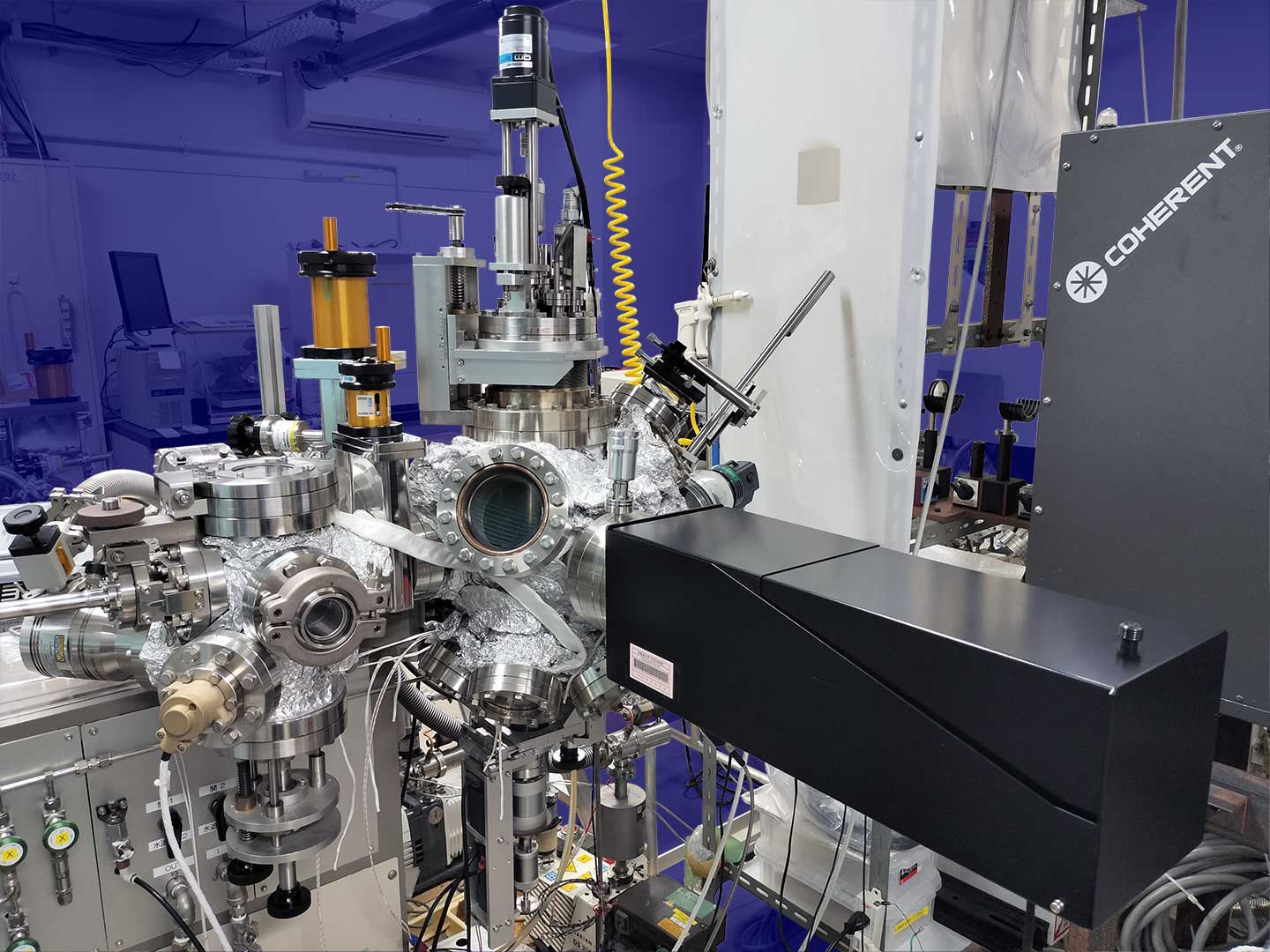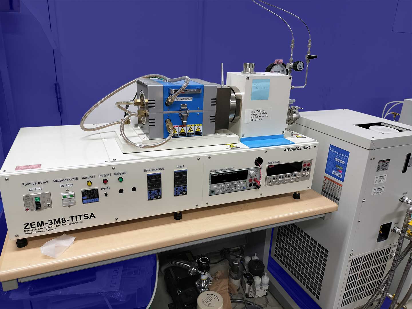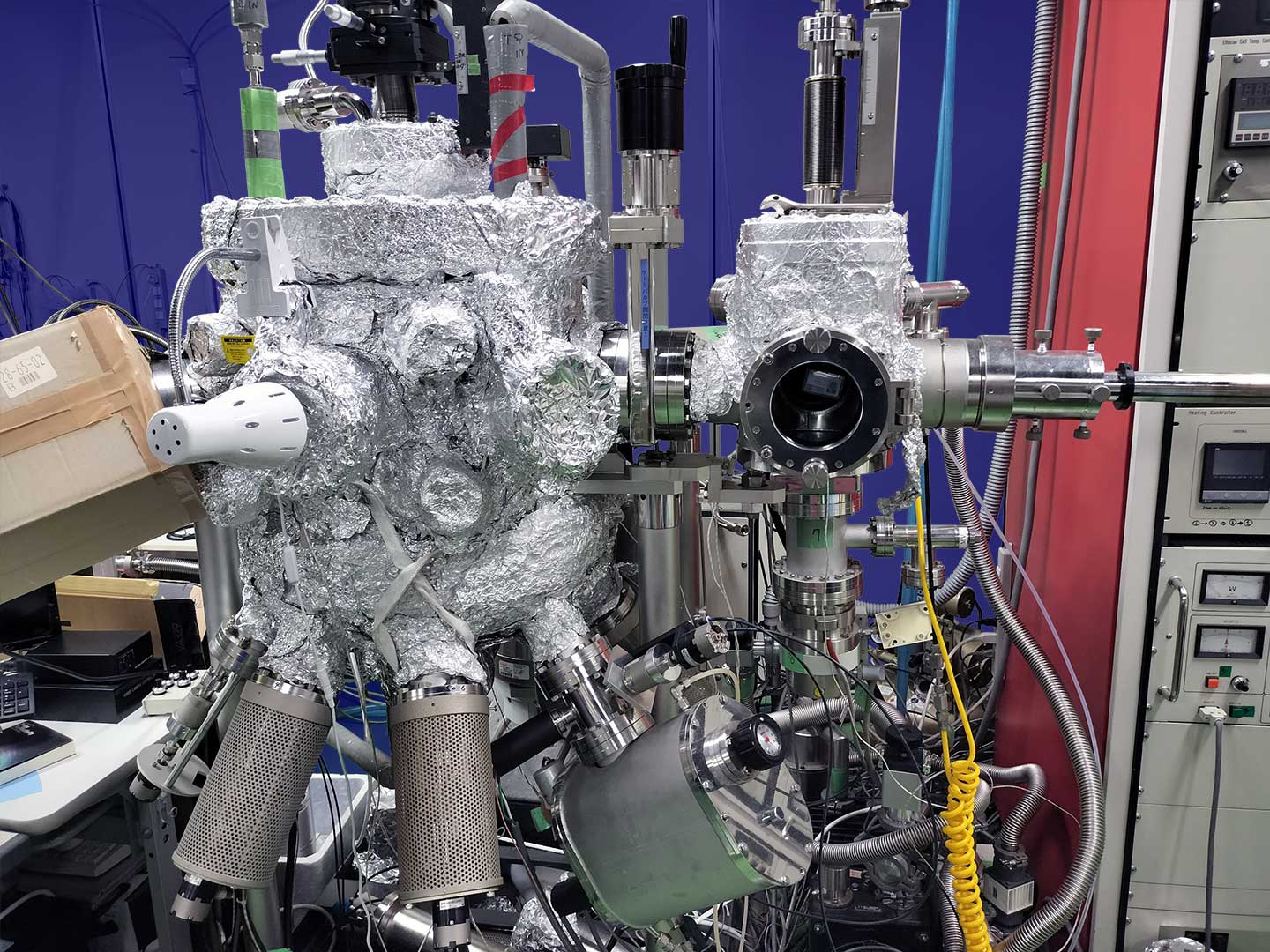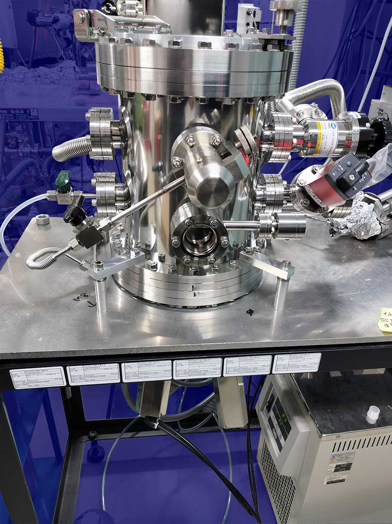 研究設備 薄膜成長装置 パルスレーザー堆積装置 パルスレーザー堆積装置2 パルスレーザー堆積+スパッタ成膜装置 カルコゲナイド スパッタ成膜装置 分子線エピタキシー装置 4源スパッタ成膜装置 イオンコーター バルク試料合成装置 Ar循環式グローブボックス(材料合成用) グローブボックス グローボックス+ホットプレス装置(大気非暴露で焼結体を作製) 放電プラズマ焼結・ホットプレス装置 プレス機 遊星ボールミル装置 各種電気炉 (ボックス炉・環状炉) 各種電気炉 (ボックス炉・環状炉) 水素化物・窒化物合成用電気炉 真空・ガス封管用システム 物性測定装置 プローバーシステム(電気・熱電・イオン・誘電特性) 電気測定プローバーシステム+グローボックス 低温電気特性評価装置 高温・低温ホール効果・熱電特性測定装置+グローボックス 高温・低温ホール効果・熱電特性測定装置+グローボックス 低温ホール効果・熱電測定装置 高温ホール効果測定装置 熱伝導率測定装置 (定常法) レーザーフラッシュ熱拡散率測定装置 熱電特性評価装置 パルス光加熱サーモリフレクタンス法熱拡散率測定装置 熱電モジュール変換効率評価装置 X線回折装置 光電変換特性評価プローバーシステム 原子間力顕微鏡 示差走査熱量計