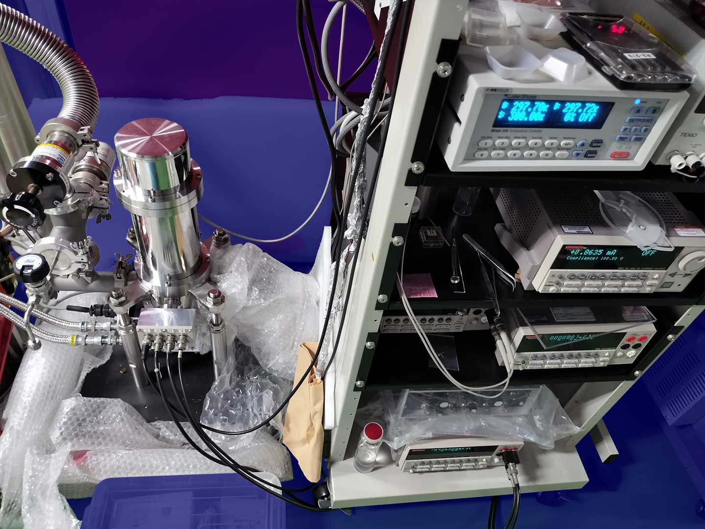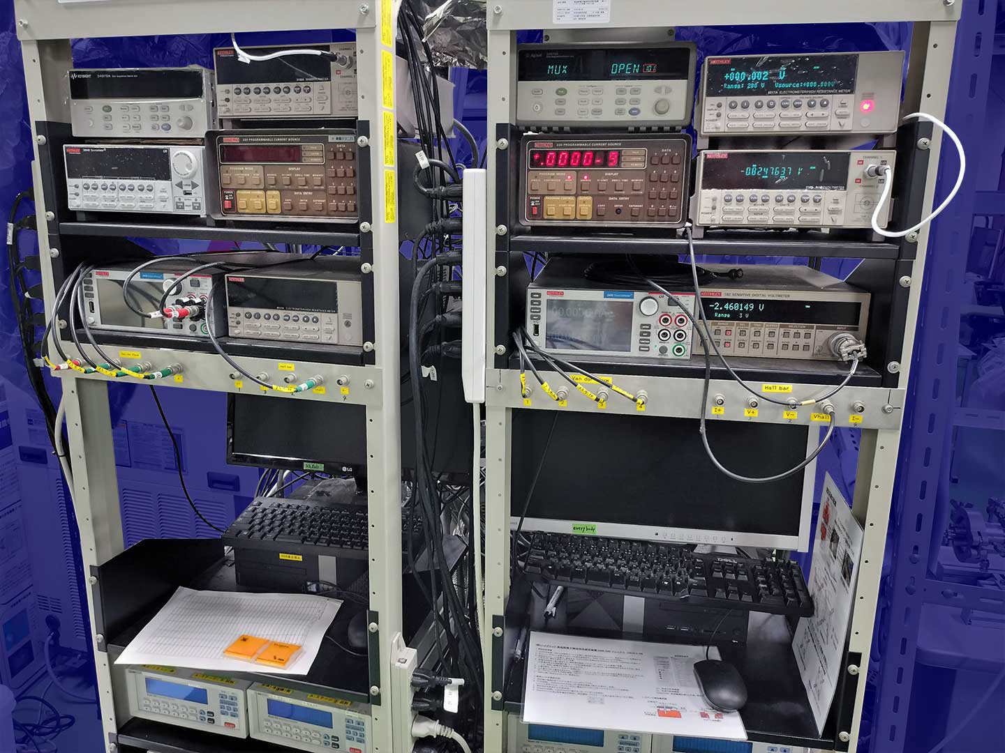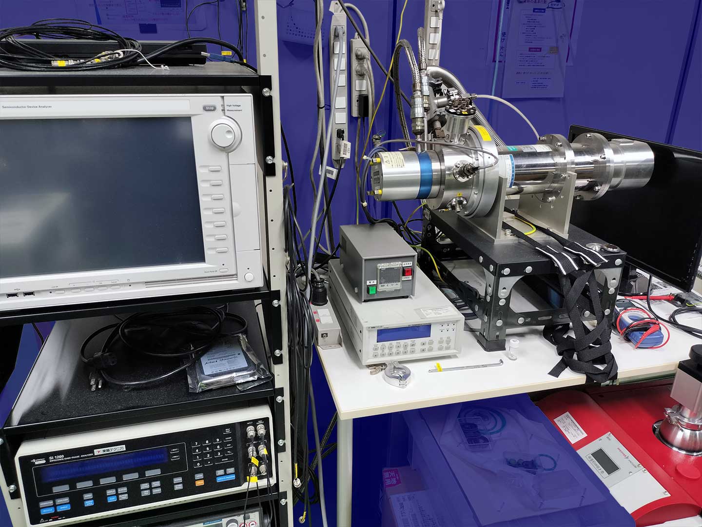 研究設備 薄膜成長装置 パルスレーザー堆積装置 パルスレーザー堆積装置2 パルスレーザー堆積+スパッタ成膜装置 カルコゲナイド スパッタ成膜装置 分子線エピタキシー装置 4源スパッタ成膜装置 イオンコーター バルク試料合成装置 Ar循環式グローブボックス(材料合成用) グローブボックス グローボックス+ホットプレス装置(大気非暴露で焼結体を作製) 放電プラズマ焼結・ホットプレス装置 プレス機 遊星ボールミル装置 各種電気炉 (ボックス炉・環状炉) 各種電気炉 (ボックス炉・環状炉) 水素化物・窒化物合成用電気炉 真空・ガス封管用システム 物性測定装置 プローバーシステム(電気・熱電・イオン・誘電特性) 電気測定プローバーシステム+グローボックス 低温電気特性評価装置 高温・低温ホール効果・熱電特性測定装置+グローボックス 高温・低温ホール効果・熱電特性測定装置+グローボックス 低温ホール効果・熱電測定装置 高温ホール効果測定装置 熱伝導率測定装置 (定常法) レーザーフラッシュ熱拡散率測定装置 熱電特性評価装置 パルス光加熱サーモリフレクタンス法熱拡散率測定装置 熱電モジュール変換効率評価装置 X線回折装置 光電変換特性評価プローバーシステム 原子間力顕微鏡 示差走査熱量計